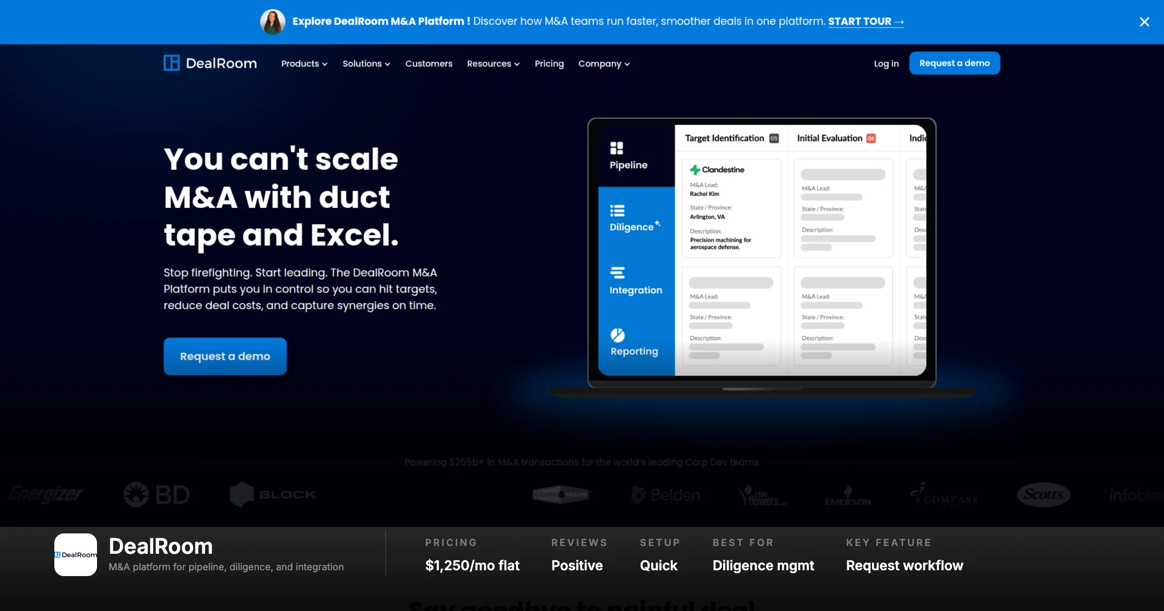 "Best of breed tool built for M&A. Integrated functionality from cultivation through integration. Reduces admin time. Helps us manage M&A at scale."