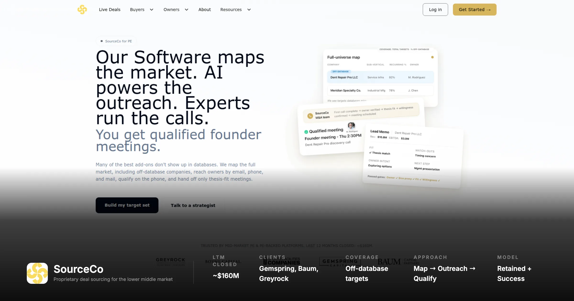 Full-service sourcing | A firm does the outreach, builds the list, and manages founder conversations on your behalf | SourceCo