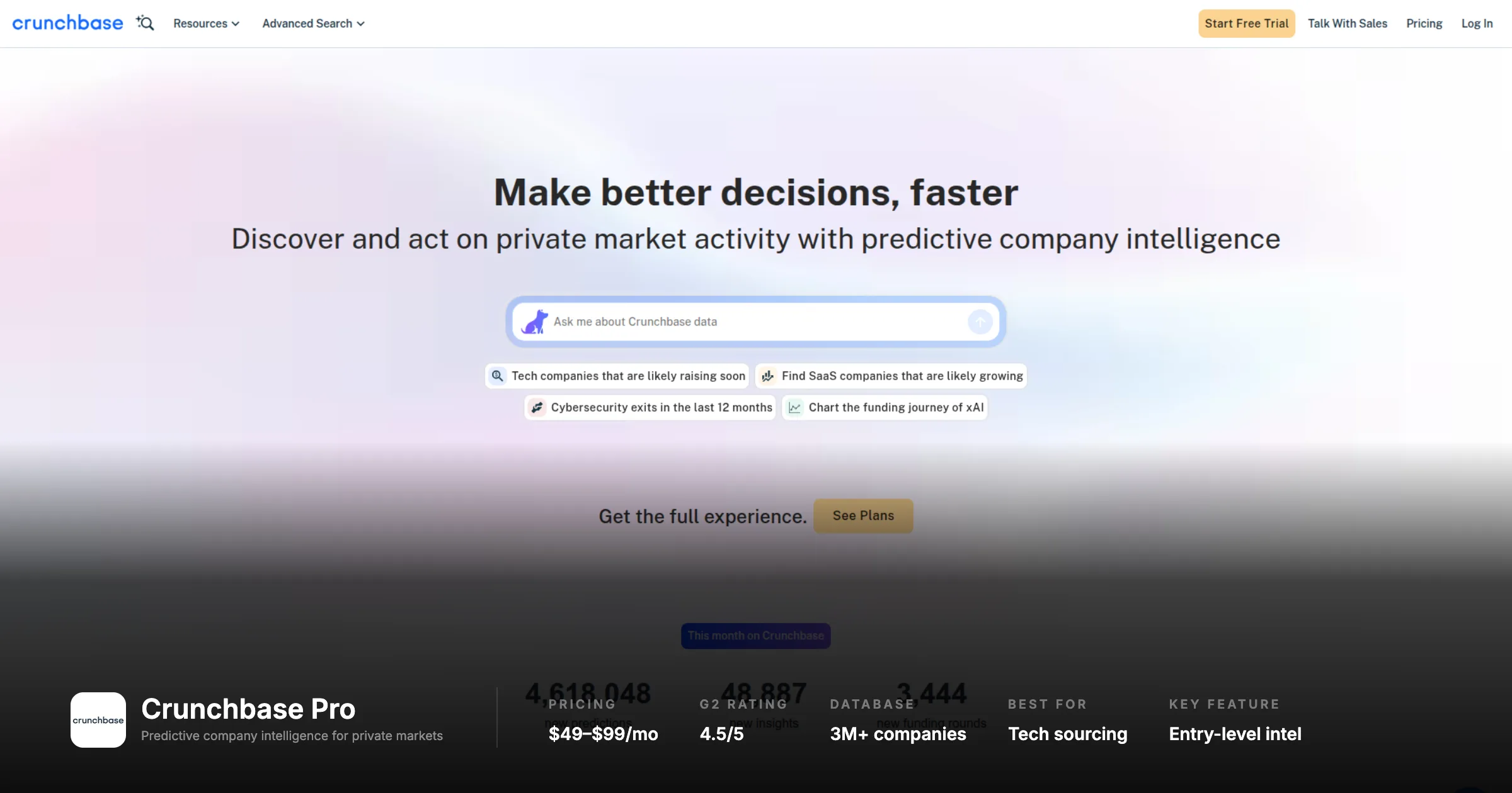 Native PitchBook and Capital IQ integrations | Average spend $505K/yr; overkill for teams under 10 people