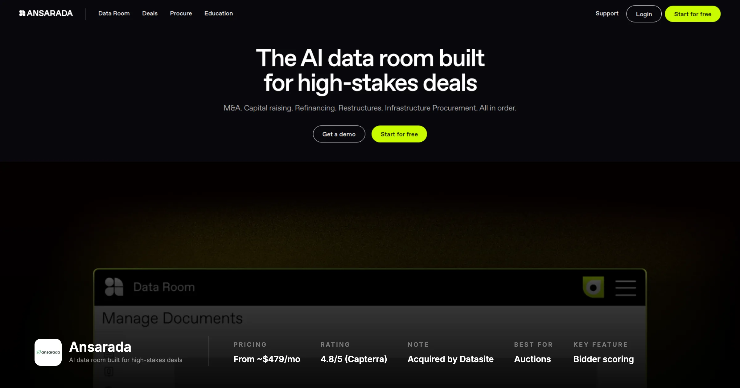 Best For Diligence management, deal execution